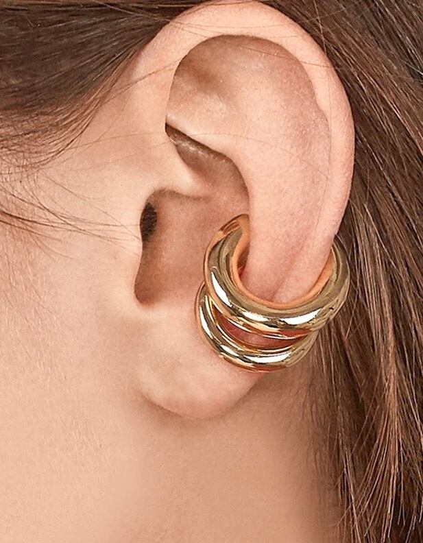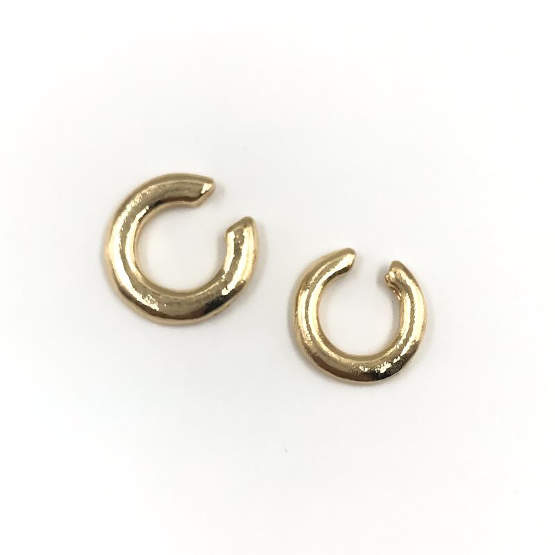 微妙にサイズの違うイヤーカフを2つ重ね、シンプルながらも奥行きがでるアクセサリーです。